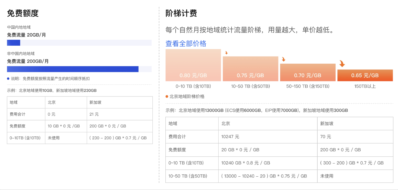 利用阿里云带宽计费模式当中的CDT公网流量免费额度以此获得仅需一个IP价格就能开通的服务器。每个月20g大陆流量以及200g非大陆流量。虽然流量少但是足够个人的学习和使用,最大的优点就是大厂稳定网络和长期在线 拥有公网IP 作为家庭低需求网络中转 远程监控服务器 都是很不错的效果,毕竟带宽可以达到80 Mbps。