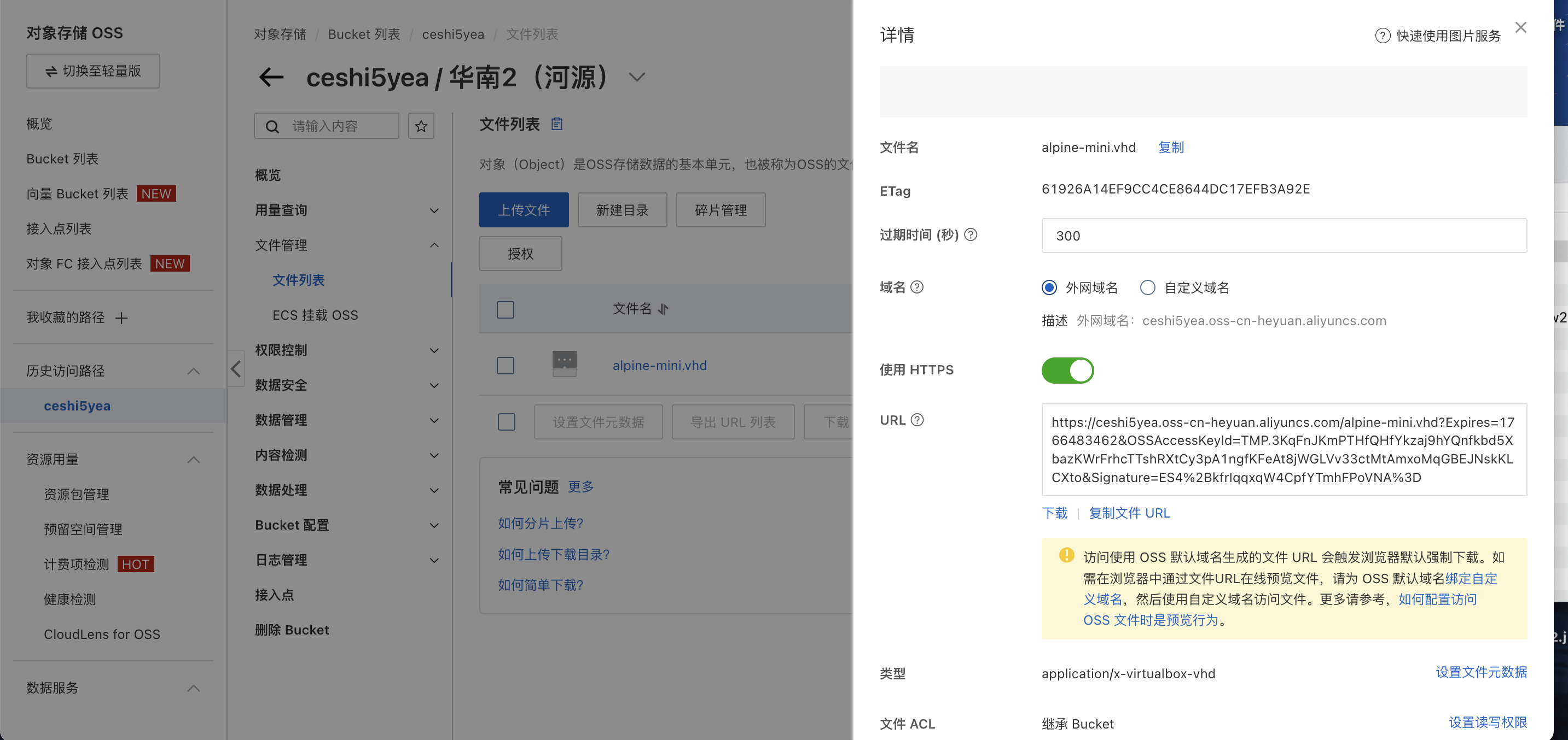 上传完后点击文件名称会显示详情 -复制文件url(后续填入)